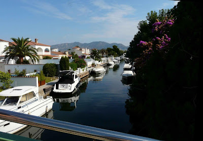 We visited Empuriabrava because it is next to the campsite just inside Spain where we decided to stay a couple of nights to break up the long journey south: Rubina resort - excellent facilities, from plentiful hot water in showers and dish-washing area, super-clean toilets, spacious plots, swimming pool and gym, about 15 minutes on foot to the centre of Empuriabrava. We spent, for car, tent, electricity and water tap on site 25 euros low season per night. The nearby beach is sandy and pleasant, good for walking too.